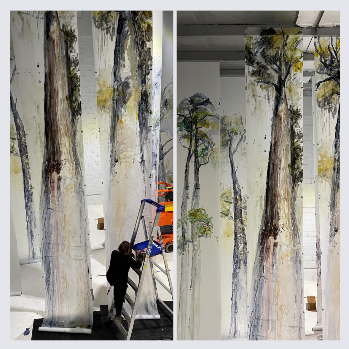The forest of Hope painted by Anne Bennett is nearing completion at Dimension Art Project Space. Looking forward to installation at ILCH with projections by Jutta Pryor, soundscape by Meagan Kenny (flute) & Scott Dunbabin (double bass). Supported by Banyule Arts and Culture Project Grant.
